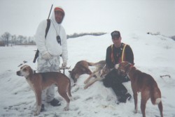 Calhoon, dogs, and his buddy. 'Yotes in Michigan have a hard