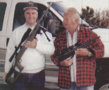Now the wait began. Fred and I had planned a trip to Montana for a little gopher and prairie dog shooting, or whatever else came along. Fred had a arranged a meeting up in Montana with Ron Coburn (Mr. Savage Arms himself). Ron was going to shoot the 19-223 Calhoon in a couple of new Savage Model 12 short action rifles. (In the picture you can see Fred coveting a Savage Striker hunting handgun.)