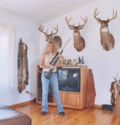 The rifle was a CZ 527 in the 19 Badger. The 5 shot group measures .188" and shot at 100 yards! (Don't make this lady mad..) |