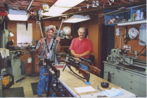 | Tommy Launstein and gunsmith Danny Martin both of MI in the shop |