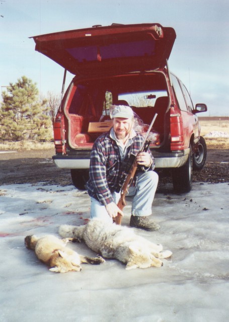 Calhoon, dogs, and his buddy. 'Yotes in Michigan have a hard