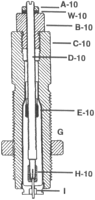 | Now, let's look at the heart of the system, the Bonanza "BR" Seater Die. The Bonanza "BR" Seater Die operates on the same principle as "In Line" hand seating dies which bench rest and target reloaders use. By looking at the drawing and picture of the "BR" die you will see that a spring loaded, floating sleeve (P30) aligns the case and bullet before the seater stem "pushes" the bullet into the case. The P30 seater sleeve is a one piece, reamed tube that resembles your rifle's chamber. Tests have shown that, when using the "BR" seater system, bullet to case alignment is within .002" or less. This figure can be three to four times more when using standard seating dies. Another benefit of the spring loaded seater sleeve P30 is that, while it was probably not intentionally designed to do so, the sleeve acts as a "cushion" to prevent bullet mashes if one doesn't get the bullet in quite the proper location. A nice bonus on the night before the big hunt! |